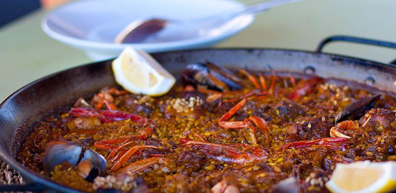 La paella de marisco con su color azafrán.